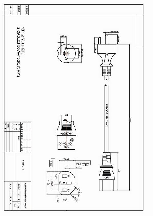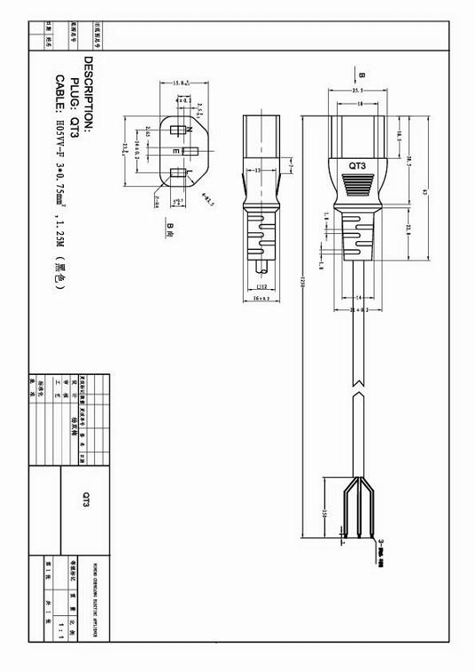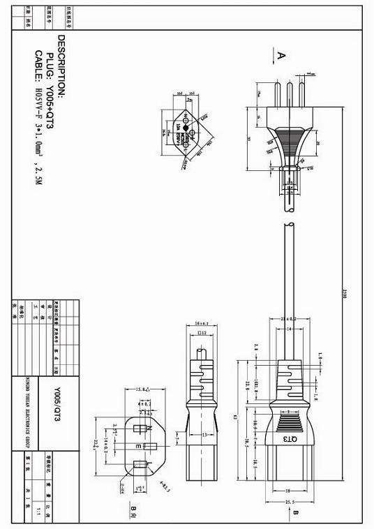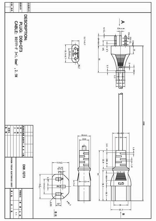 意大利IMQ接C13品字尾电源线图纸