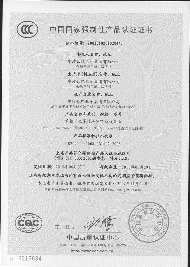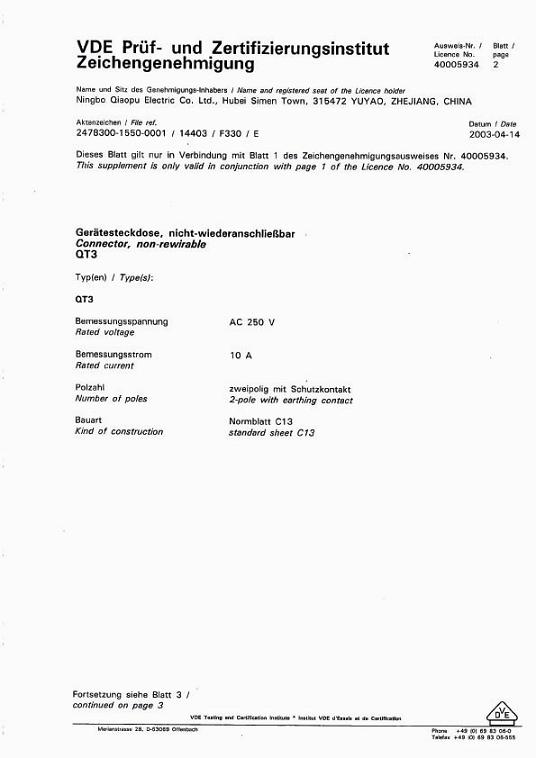 IEC 60320 C13品字尾证书