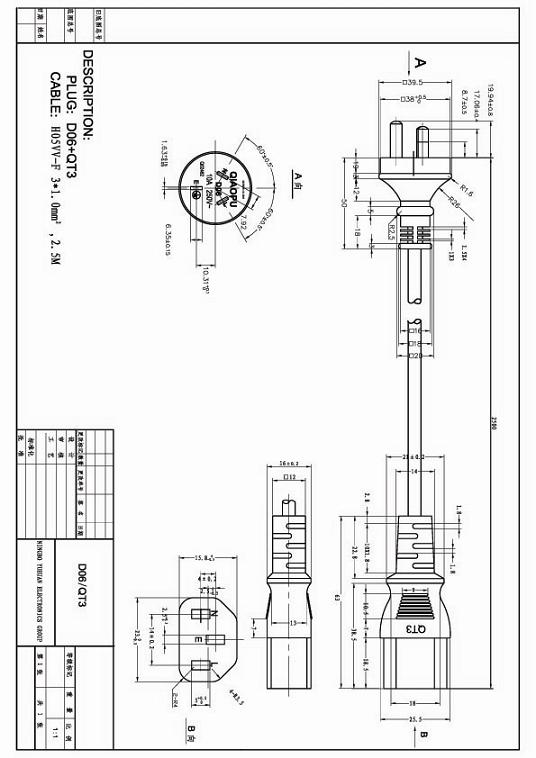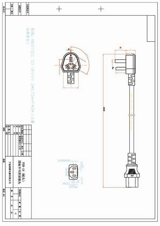 中国CCC接C13品字尾电源线图纸