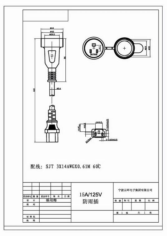 日本PSE JET旋转插头电源线图纸