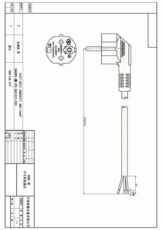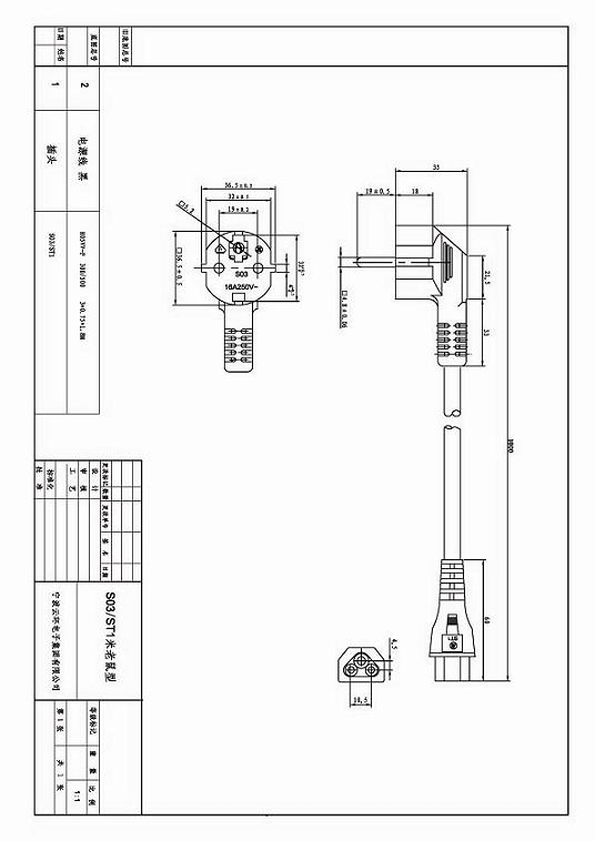 中国CCC电源线16A图纸