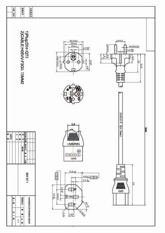 欧洲VDE CEE7/7直头 D04接C13品字尾电源线图纸