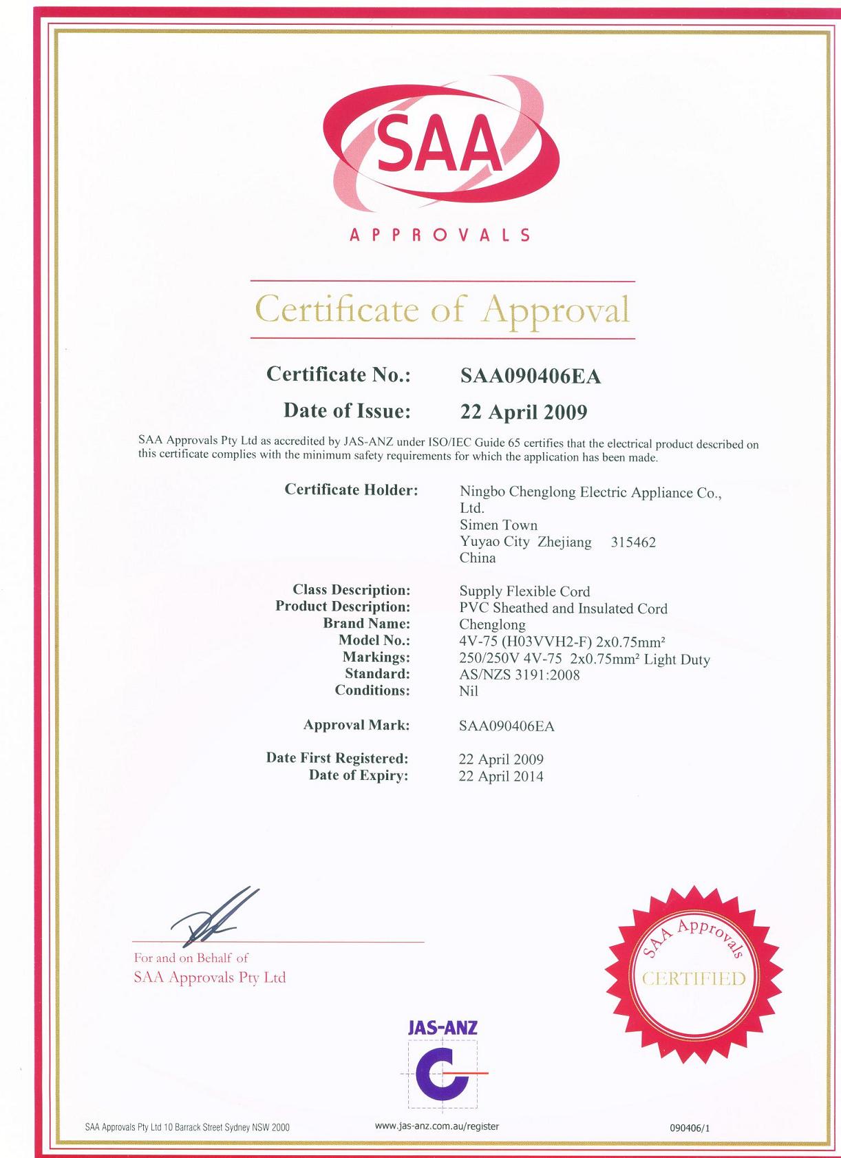 澳大利亚SAA证书