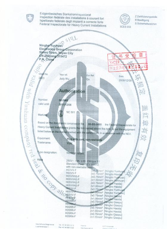 瑞士SEV证书