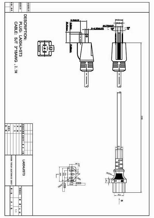 美国UL CSA医用电源线图纸