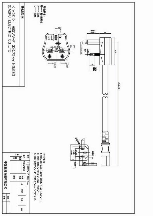 欧洲VDE CEE7/7接C13品字尾电源线图纸