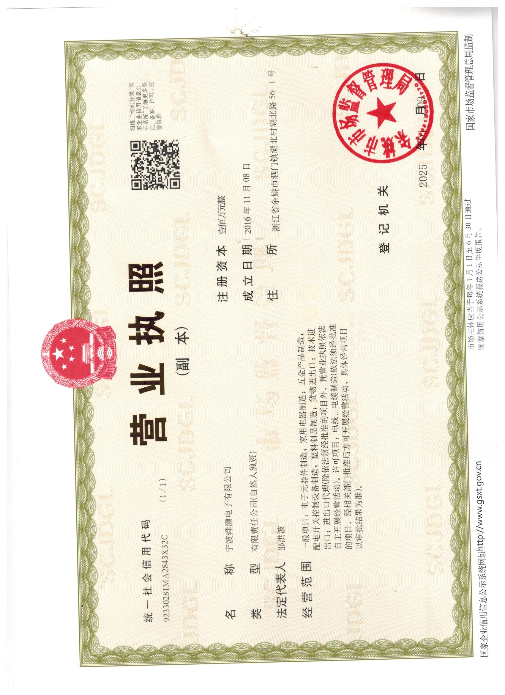 舜灏电子营业执照